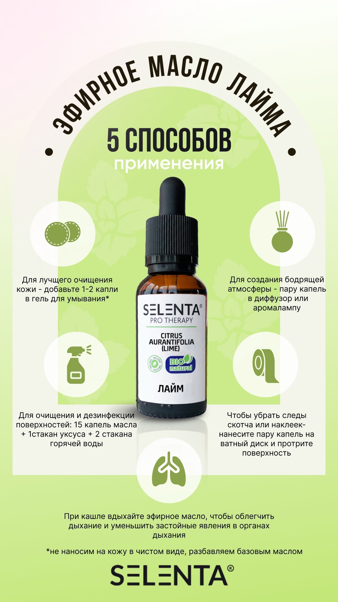 Бодрящее, летнее и создающее позитивное настроение масло Лайма используют в косметологии, массажной практике (особенно в тайском и антицеллюлитном массаже) и ароматерапии. Фруктовые нотки слегка разбавлены терпкостью цедры. Косметологи с его помощью открывают «второе дыхание» кожи, замедляя процессы старения. Эфир обладает тонизирующими, очищающими, спазмолитическими, восстанавливающими, себорегулирующими, сужающими поры свойствами. Эфирным маслом Лайма пользуются при бессоннице, в периоды значительных эмоциональных и физических нагрузок. Помогает сбить жар, усилить выработку желчи (желчегонное), снизить болевой синдром. Неуверенным и стеснительным людям сеансы ароматерапии помогают расслабиться, повысить самооценку. Лаймовое масло усиливает рост волос, укрепляет волосяные луковицы при обогащении им косметических средств.