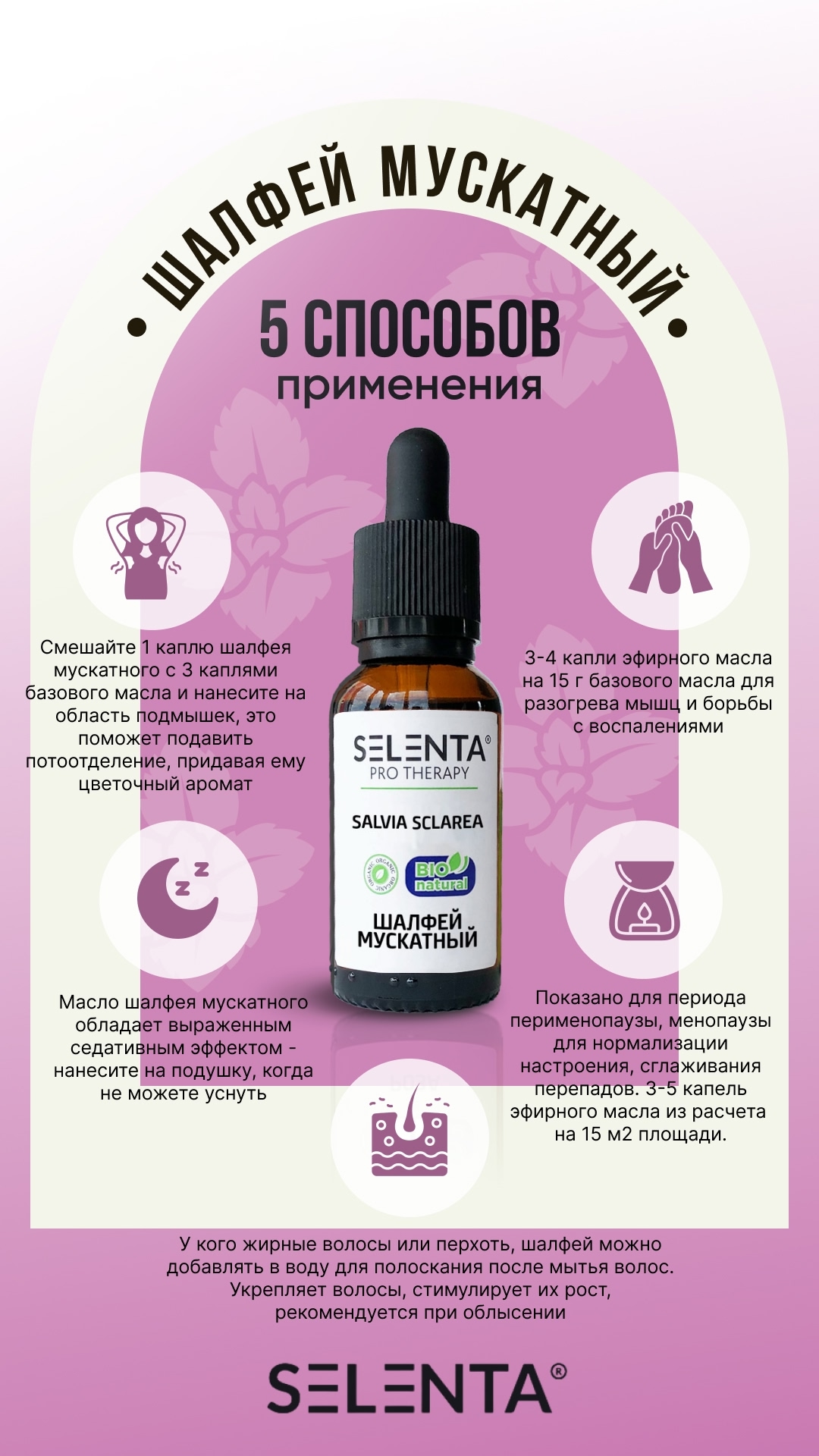 Состав: Эфирное масло Шалфея Мускатного 100%