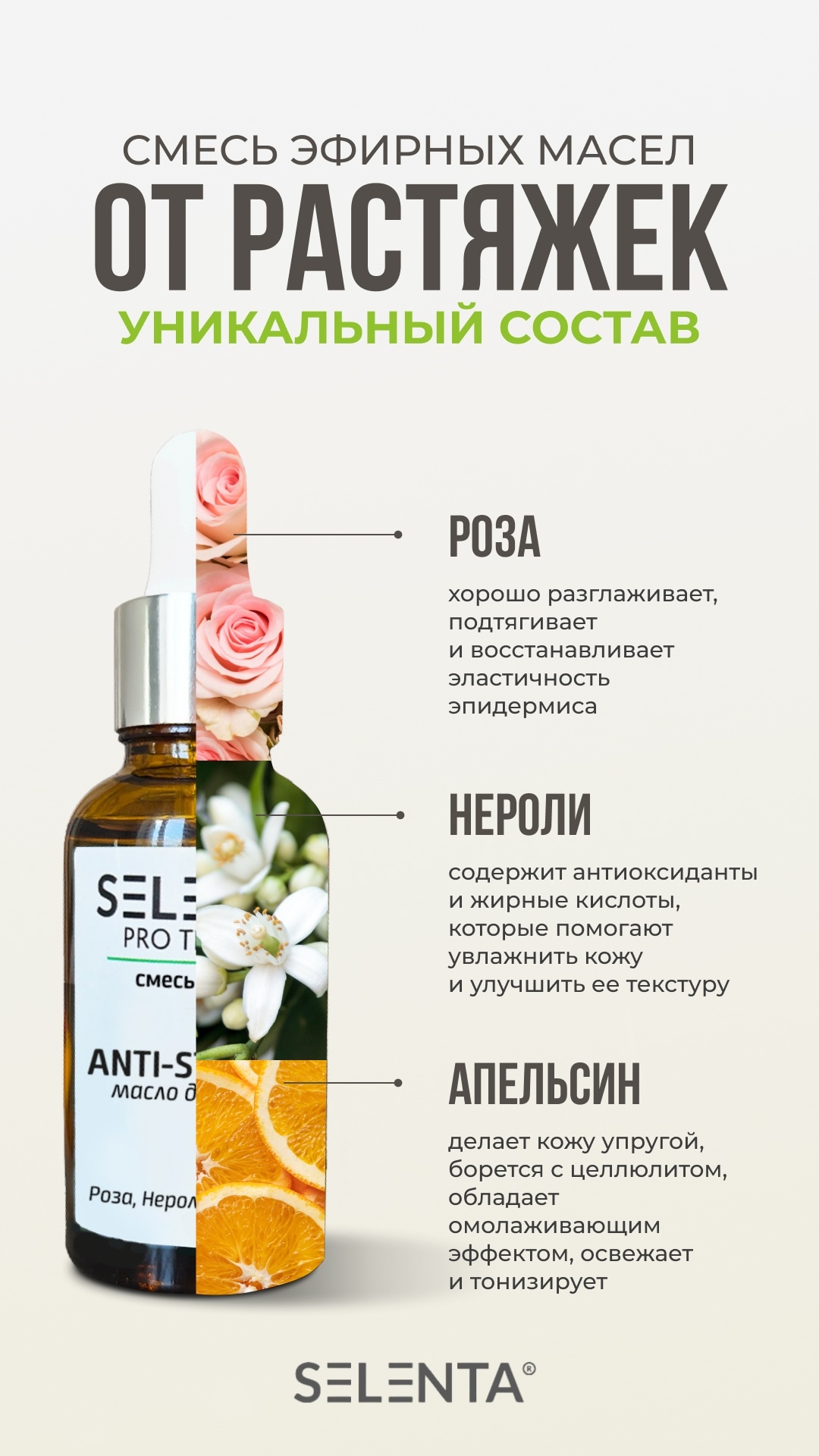 Смесь масел является идеальным выбором для тех, кто хочет улучшить состояние своей кожи и предотвратить появление растяжек. Она не только эффективна, но и приятна в использовании, так как состоит из натуральных компонентов.
