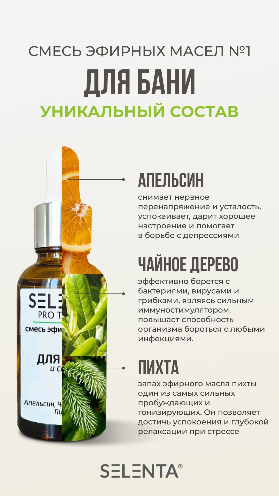 Эфирное масло Апельсина 100%; Эфирное масло Чайного Дерева 100%; Эфирное масло Пихты 100%.