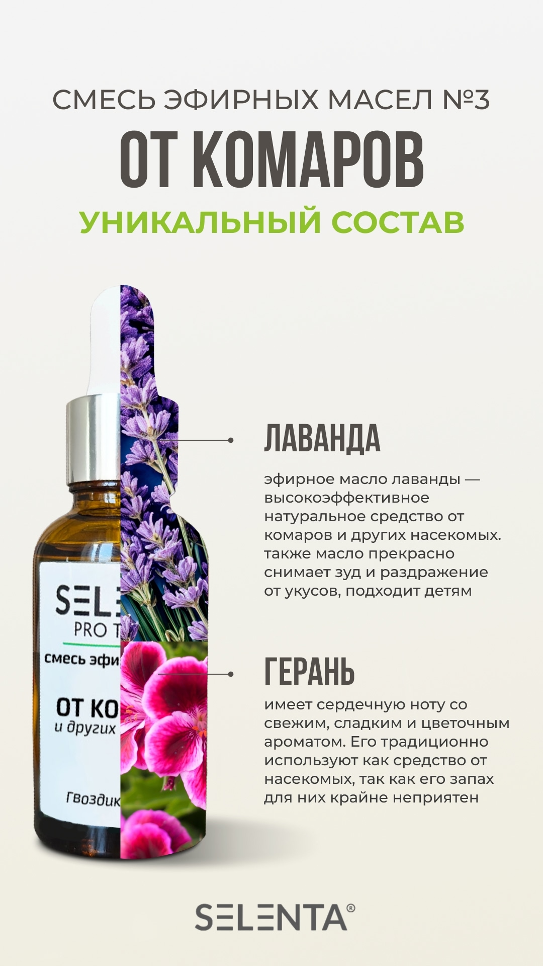 Смесь эфирных масел «От комаров» — это натуральное средство, которое помогает защититься от назойливых насекомых. Оно содержит эфирные масла, которые отпугивают комаров и других насекомых. Смесь масел можно использовать как в помещении, так и на открытом воздухе. Она не только защищает от насекомых, но и обладает приятным ароматом.